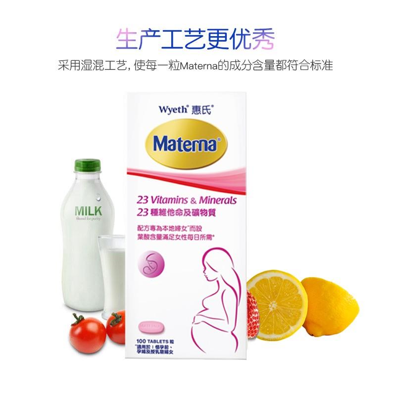 港版惠氏Wyeth Materna孕妇叶酸综合维生素 100粒/盒