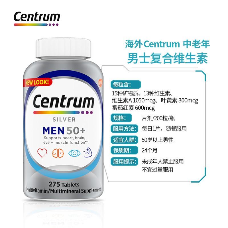 善存Centrum 男士50+复合维生素片银片 275粒/瓶 特加番茄红素