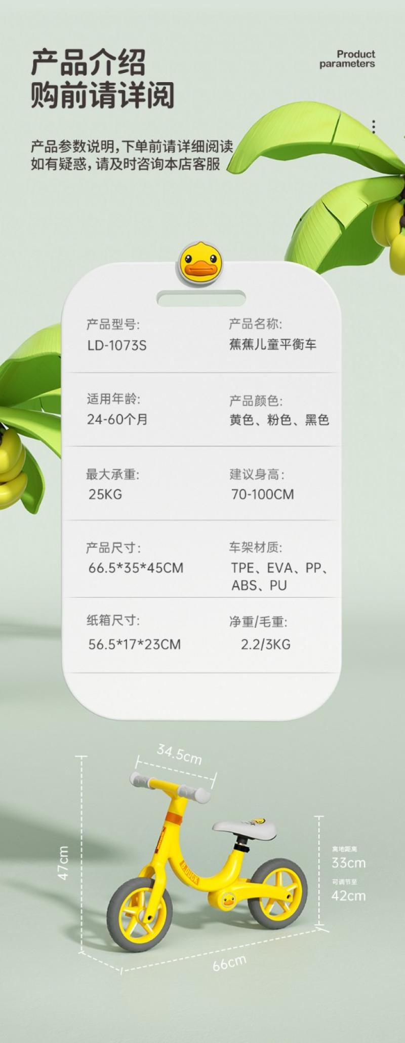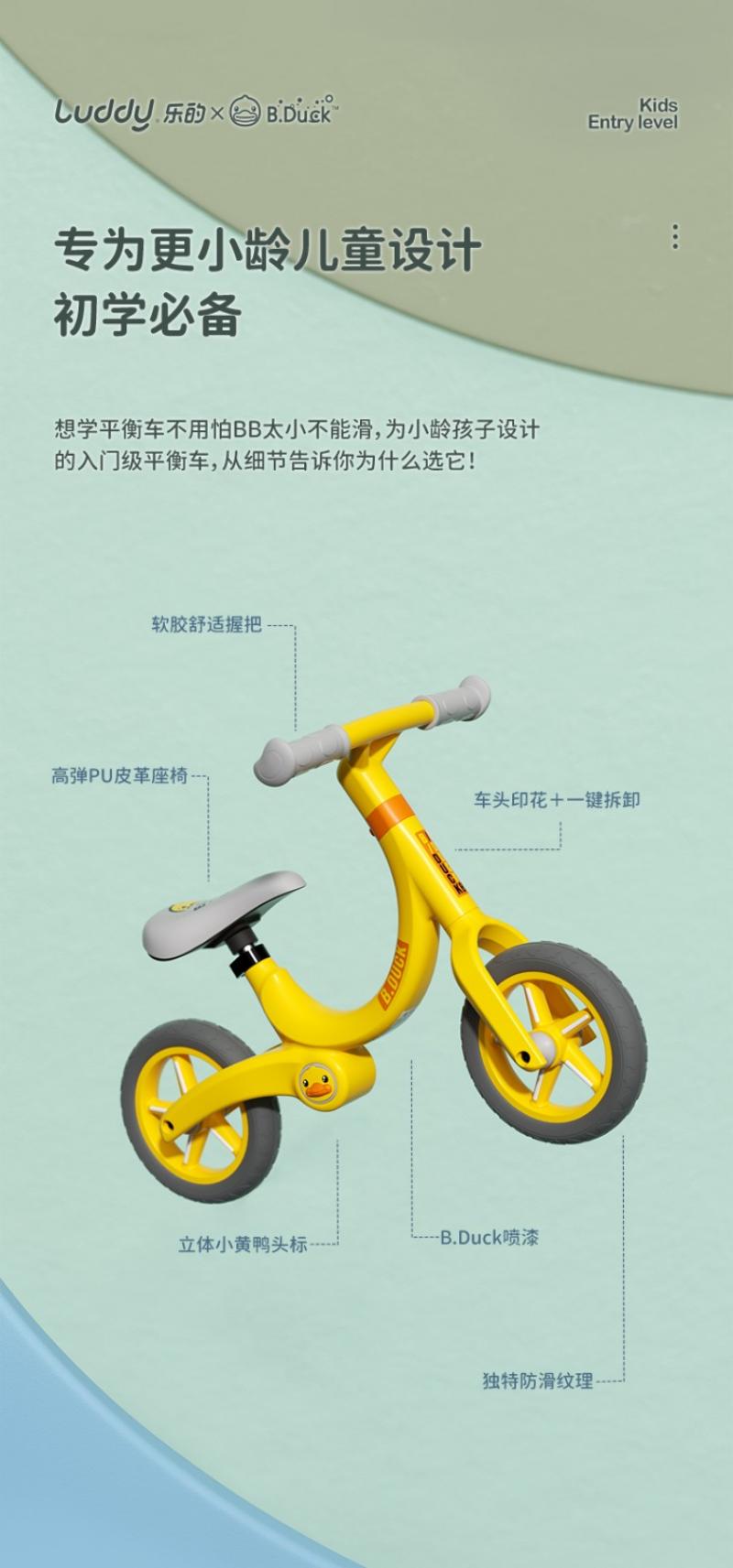 乐的小黄鸭儿童平衡车无脚踏1一3一6岁男女宝宝学步车玩具滑行车