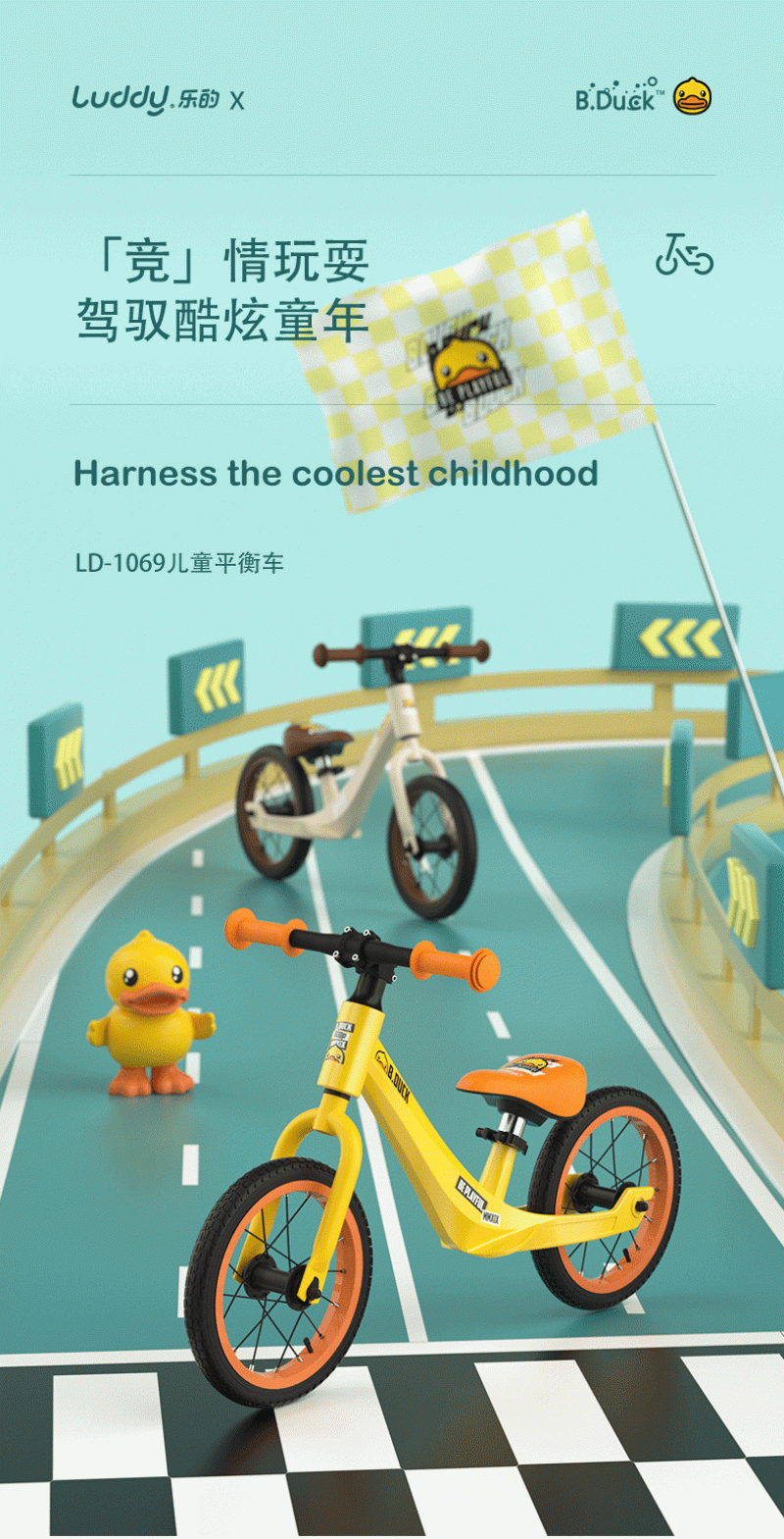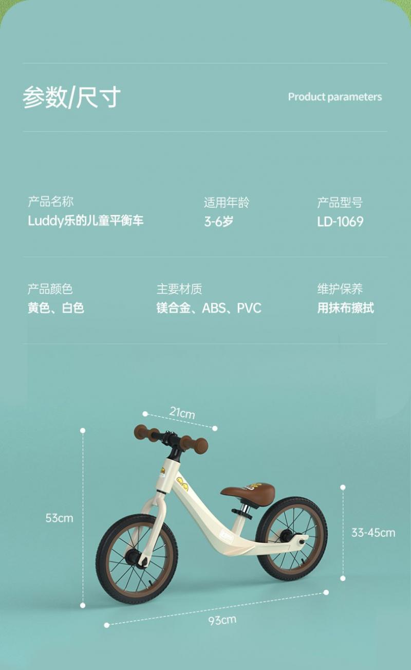 乐的luddy儿童平衡车无脚踏小黄鸭2-3-6岁宝宝滑行车自行车学步滑步车 1069小黄鸭 充气轮胎